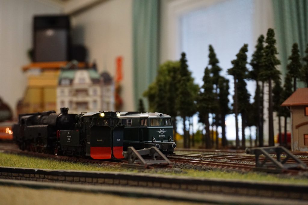 Durch die genormte Größe sind unsere Module mit den Modulen anderer Modellbahnvereine kompatibel. Besonders bei den Eurotrack-Ausstellungen jedes Jahr lassen sich so Stücke verschiedener Länder zusammenbauen. Da kommt es schon mal vor, dass Österreich an die Normandie oder Belgien grenzt.